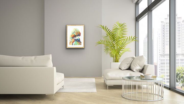 The framed in situ images shown are intended to help envision how the artwork could look in your space, and also provide some perspective on scale.