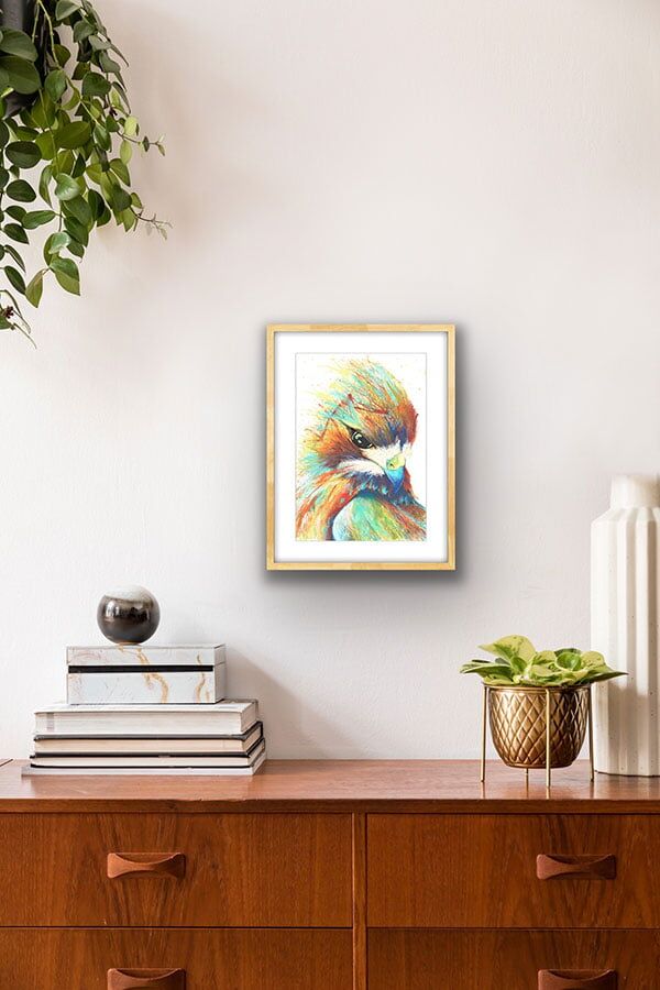 This Colourful Hawk Art Print is Medium size (40.6cm x 50.8cm) gallery quality with vibrant colours printed on lightly textured 100% cotton paper.