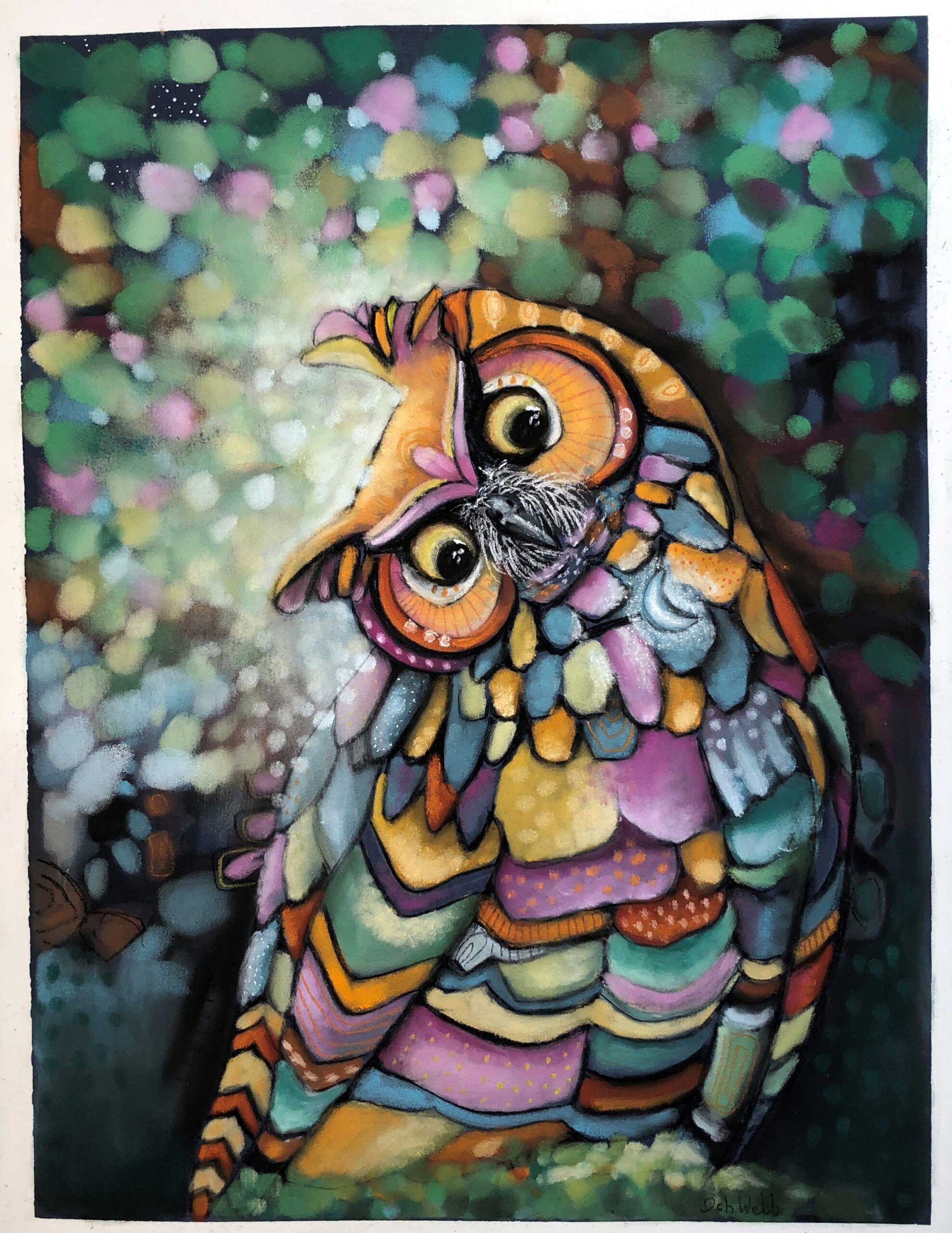 The “Follow the Moon” Owl artwork is a giclee art print taken from an original, created using pan pastels.