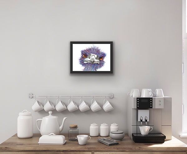 This print does not come framed. The framed in situ images shown are intended to help envision how the artwork could look in your space, and also provide perspective on scale.