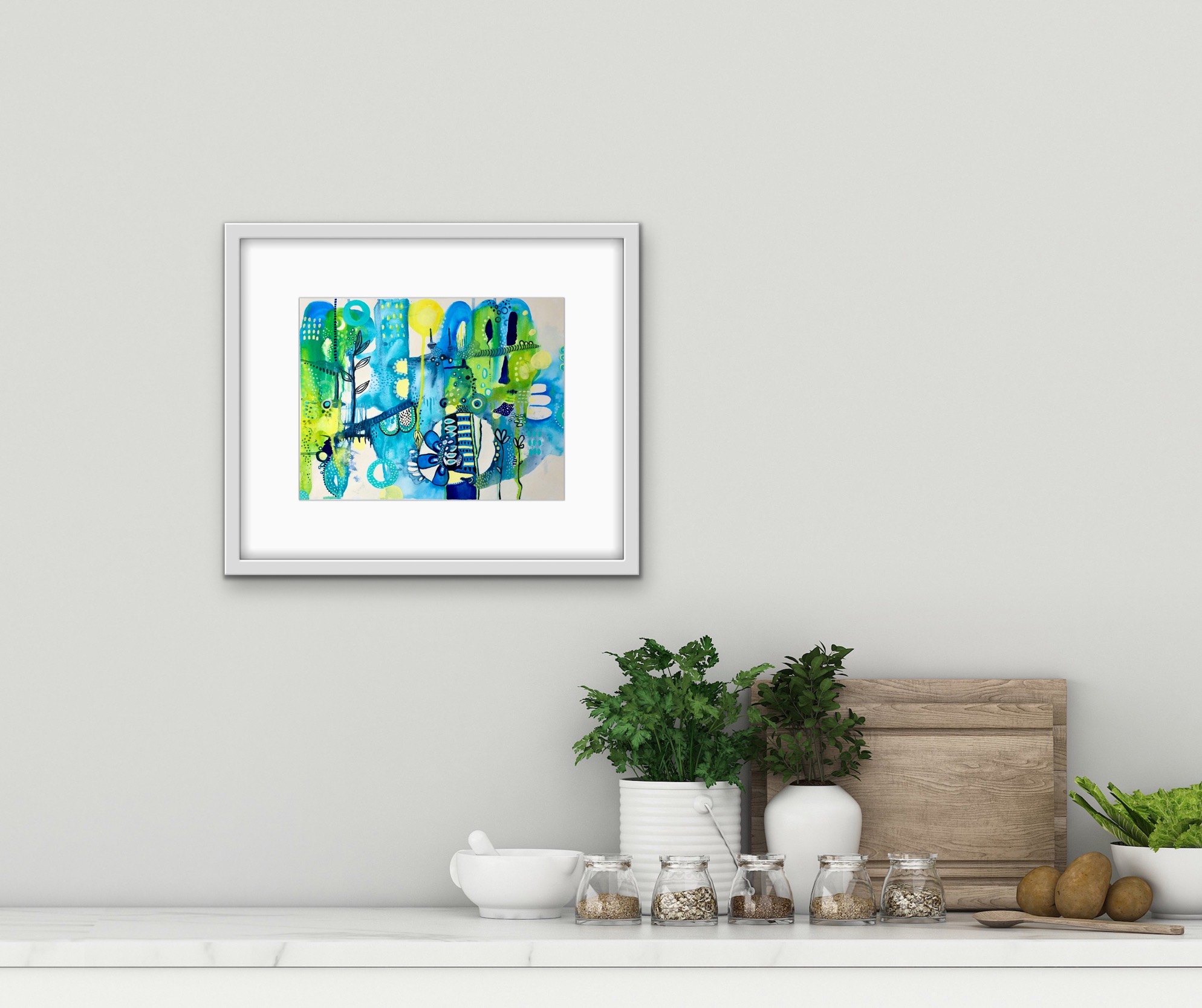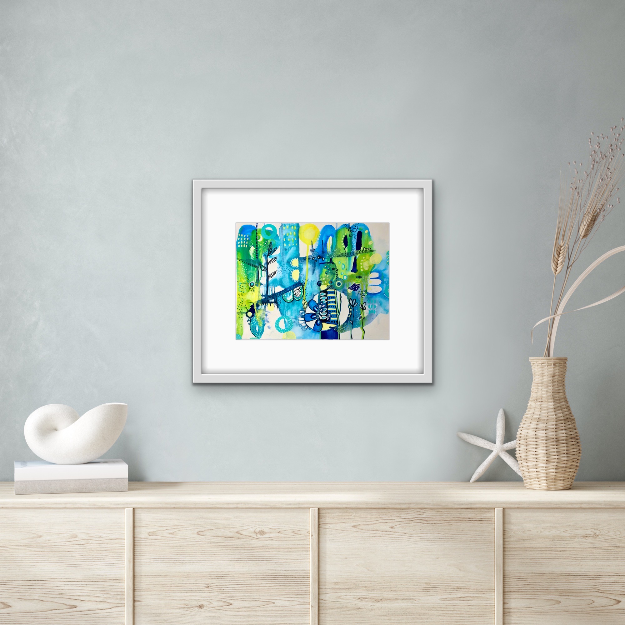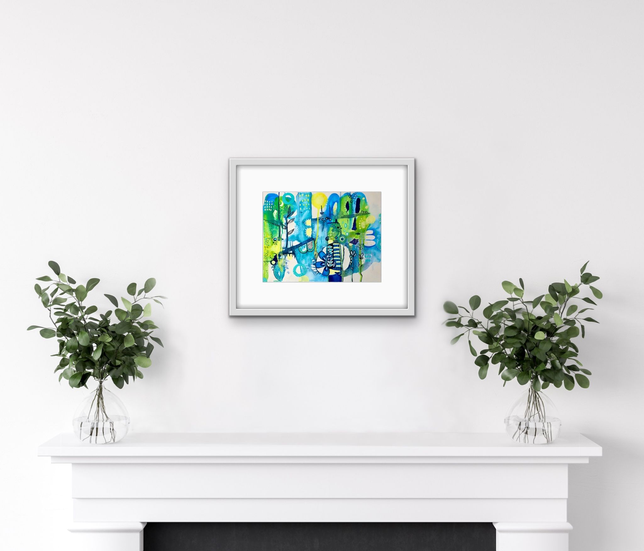The framed in situ images shown are intended to help envision how the artwork could look in your space, and also provide perspective on scale.