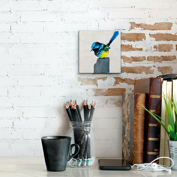 What’s Down There? Fairy Wren is a fun painting of a cute fairy wren created on a wooden panel using professional acrylic inks.